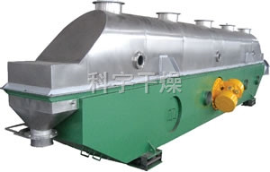物料自進(jìn)料進(jìn)口進(jìn)入機(jī)內(nèi),在振動(dòng)力作用下,物料沿水平面流化床拋擲,向前連續(xù)運(yùn)動(dòng),熱風(fēng)向上穿過流化床同濕物料換熱后,濕空氣經(jīng)旋風(fēng)分離器除塵后由排風(fēng)1:3排出,干燥物料由排料進(jìn)口排出。