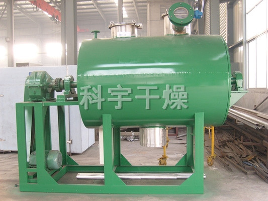 本機(jī)是一種新穎臥式間歇式真空干燥設(shè)備,濕物料經(jīng)傳導(dǎo)蒸發(fā),帶有刮板攪拌器不斷清除熱面上的物料,并在容器內(nèi)推移形成循環(huán)流,水份蒸發(fā)后由真空泵抽出。